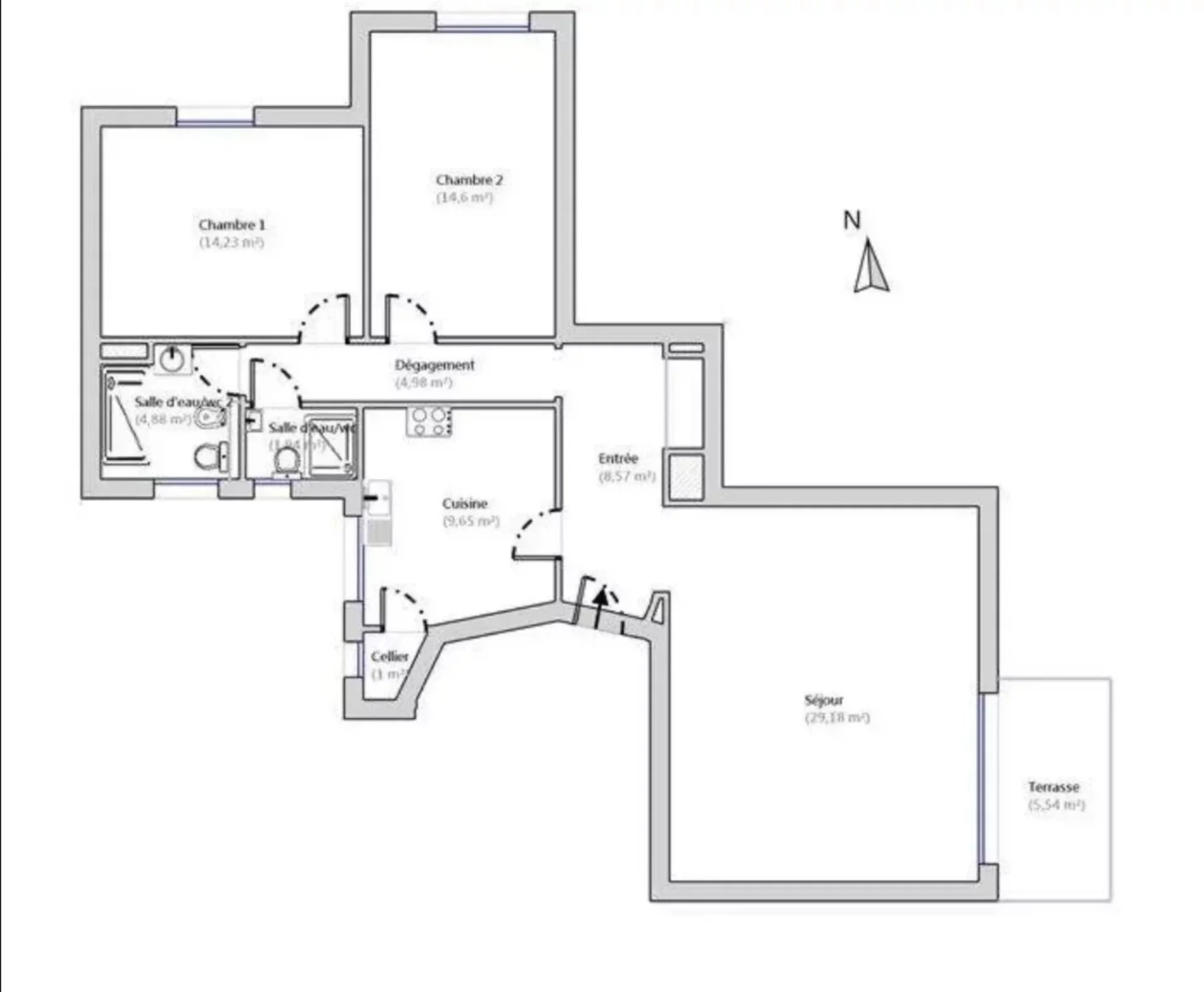 Just a stone's throw from the Palais des Festivals, the Old Port, and the Forville market, this splendid 88 m² corner apartment, completely renovated in 2021, elegantly combines old-world charm with modern comfort.