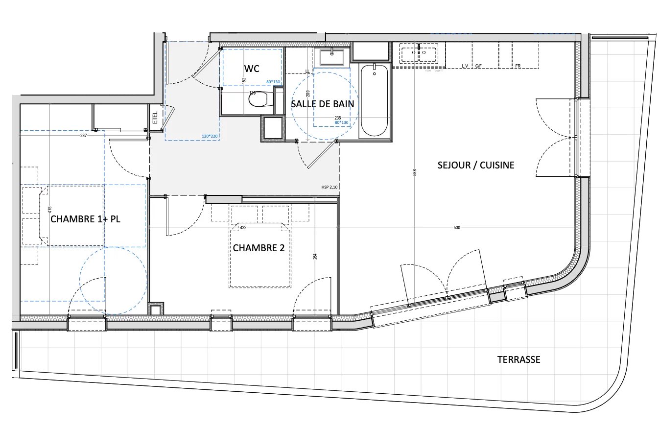 L’appartement se compose d’un très grand séjour de 36 m², un véritable espace de vie spacieux et convivial, idéal pour recevoir. Les deux chambres, également très grandes, offrent confort et tranquillité.