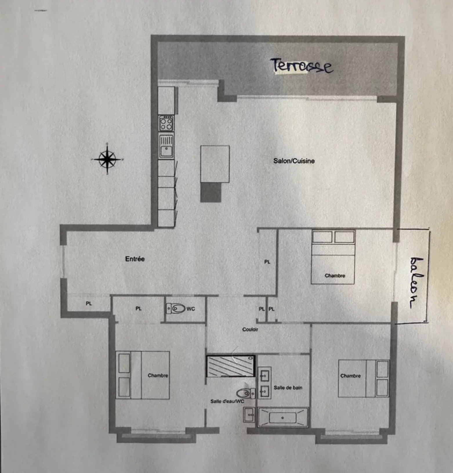 Grande terrasse de 17,5 m² + balcon supplémentaire