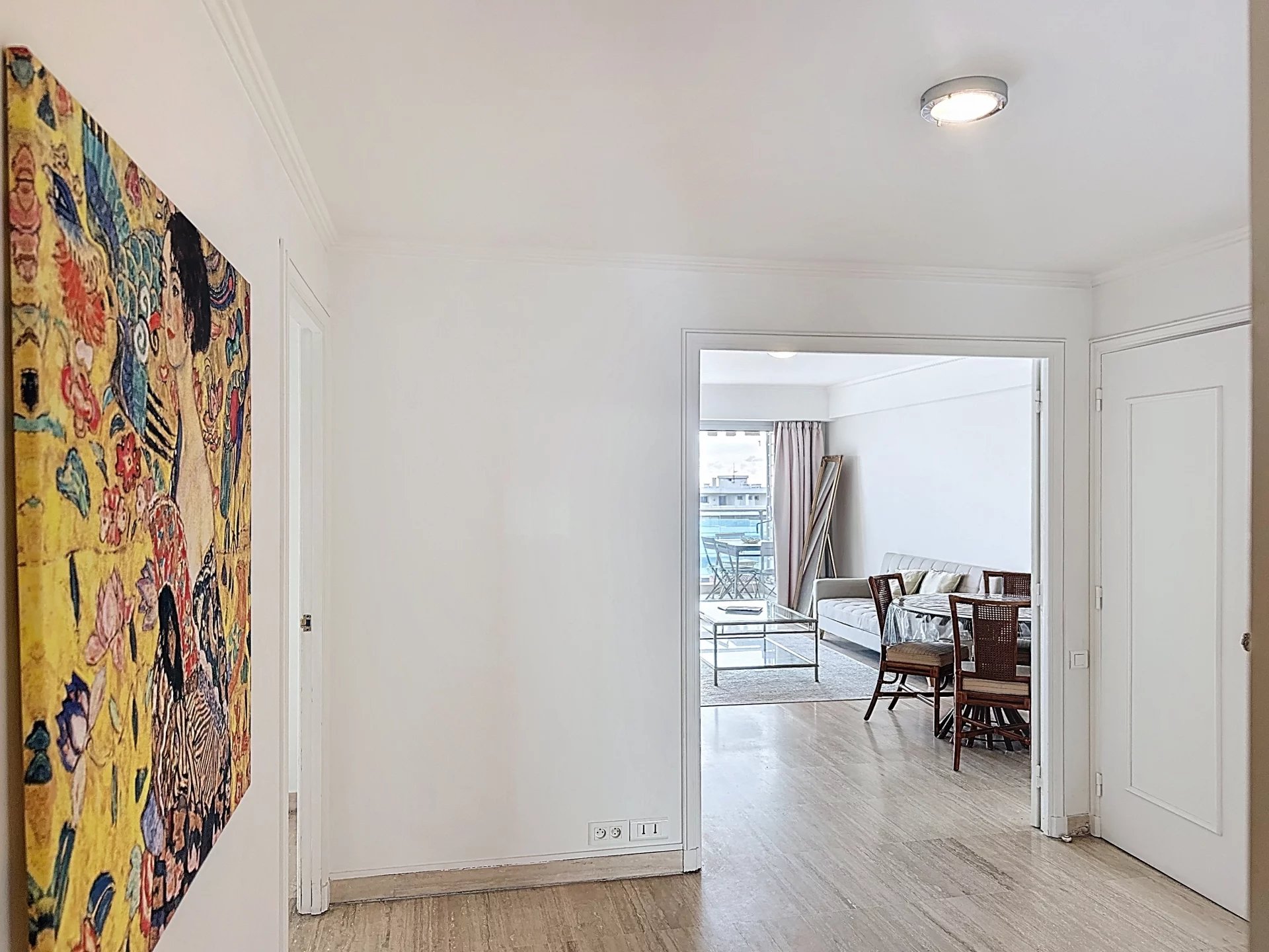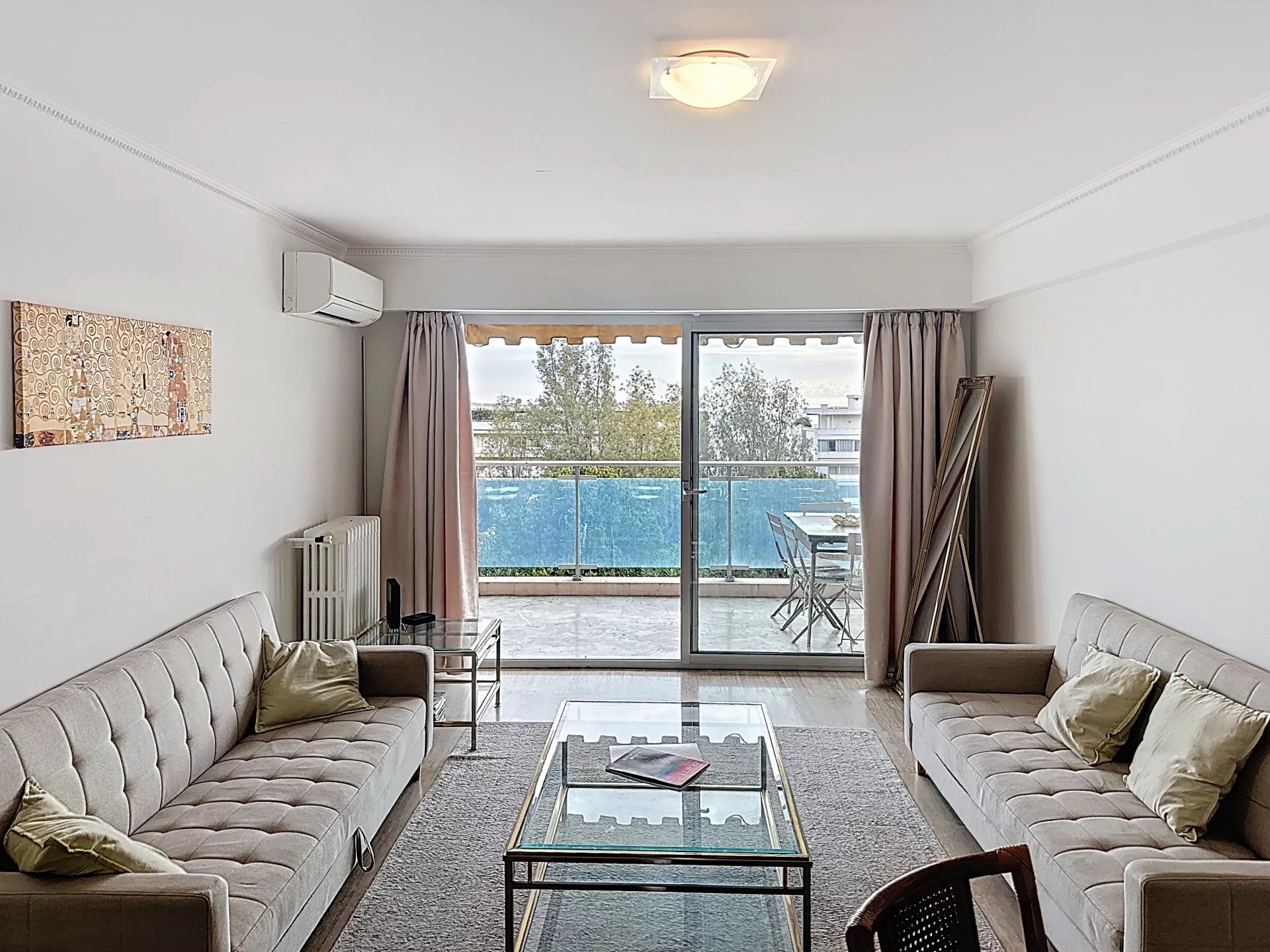 Dans une résidence de grand standing avec piscine, gardien et jardins paysagers, découvrez cet appartement traversant de 93,68 m², offrant une vue dégagée sur la mer, les montagnes et les espaces verts.
